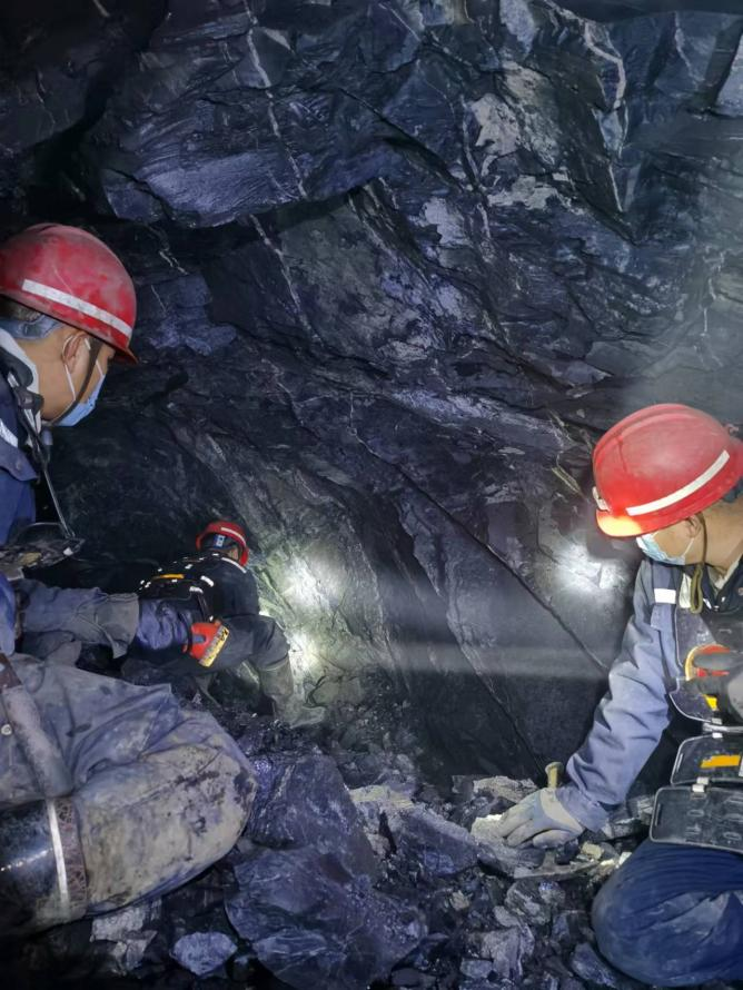 ?????????????????????????????圖丨赤峰大井子礦業二采區技術室地測組成員現場勘查揭露礦體具體狀態數據