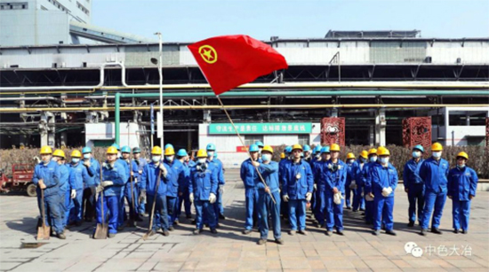 中色大冶冶煉廠團(tuán)員青年對(duì)相關(guān)區(qū)域的衛(wèi)生和含銅物料進(jìn)行清理、回收