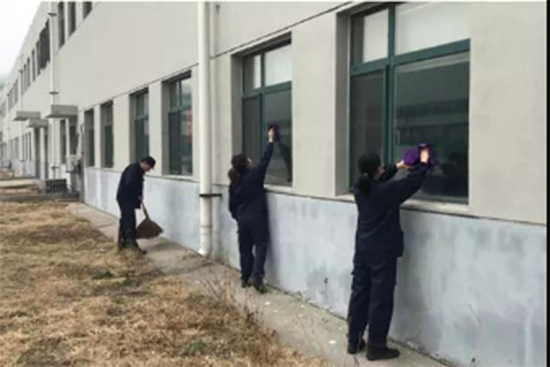 中色沈礦沈陽設(shè)計(jì)院團(tuán)員青年對(duì)公共區(qū)域進(jìn)行清掃消毒
