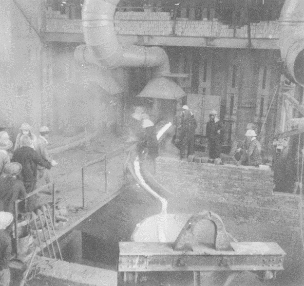 1960年4月6日,中色大冶迎來(lái)了第一代爐——反射爐點(diǎn)火的神圣時(shí)刻;4月22日下午2點(diǎn),第一包冰銅放滿(mǎn);4月23日,冶煉廠(chǎng)反射爐順利放出第一爐冰銅。