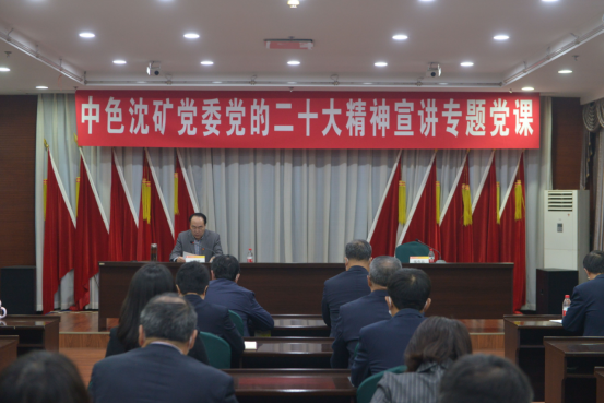 11月17日,按照集團公司黨委統(tǒng)一部署,中國有色集團出資企業(yè)沈陽礦業(yè)投資有限公司(簡稱:中色沈礦)黨委召開黨的二十大精神宣講專題黨課會議,中色沈礦黨委書記、董事長王鎖寬以《以二十大精神為行動綱領(lǐng) 、推動沈礦綠色高質(zhì)量發(fā)展,凝心聚力在新征程中展現(xiàn)新?lián)?dāng)貢獻新力量》為題,為全級次廣大黨員干部講授專題黨課,宣貫黨的二十大精神,對走好走穩(wěn)中色沈礦綠色高質(zhì)量發(fā)展之路作出部署,并就學(xué)習(xí)落實好二十大精神提出要求。