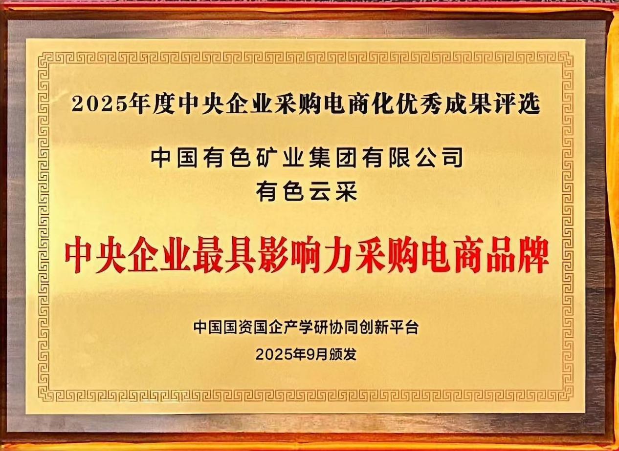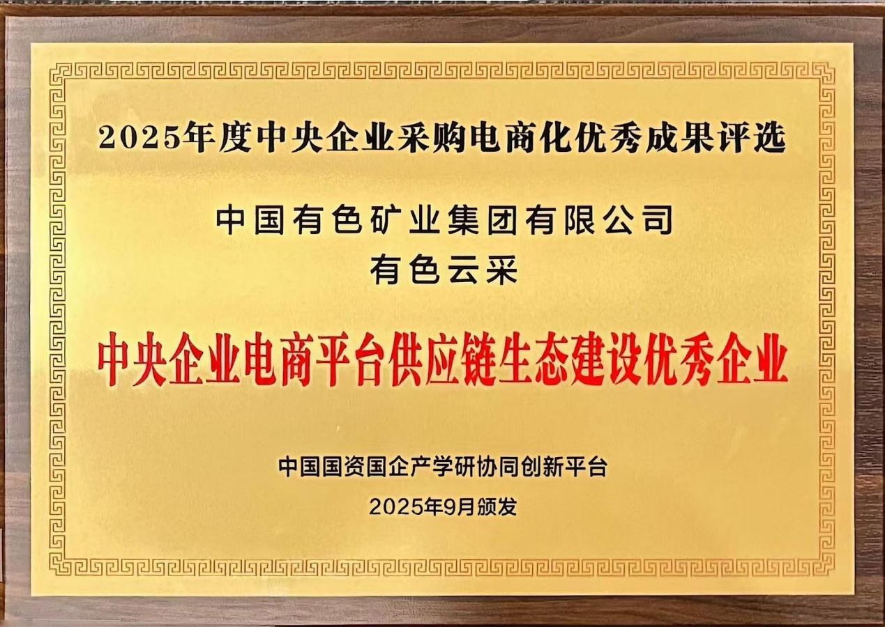 近日,中國有色集團自主建設并運營的“有色云采”電子商城在2025年中央企業采購電商化優秀成果評選中榮獲“2025年度中央企業最具影響力采購電商品牌獎”和“2025年度中央企業電商平臺供應鏈生態建設優秀企業獎”。這是“有色云采”電子商城在該評選中連續第三屆獲得獎項。