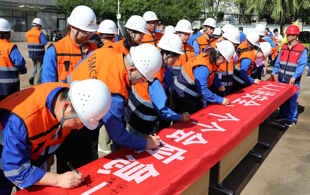 中色十五冶青年員工在“安全生產(chǎn)月”啟動(dòng)儀式橫幅上進(jìn)行簽名