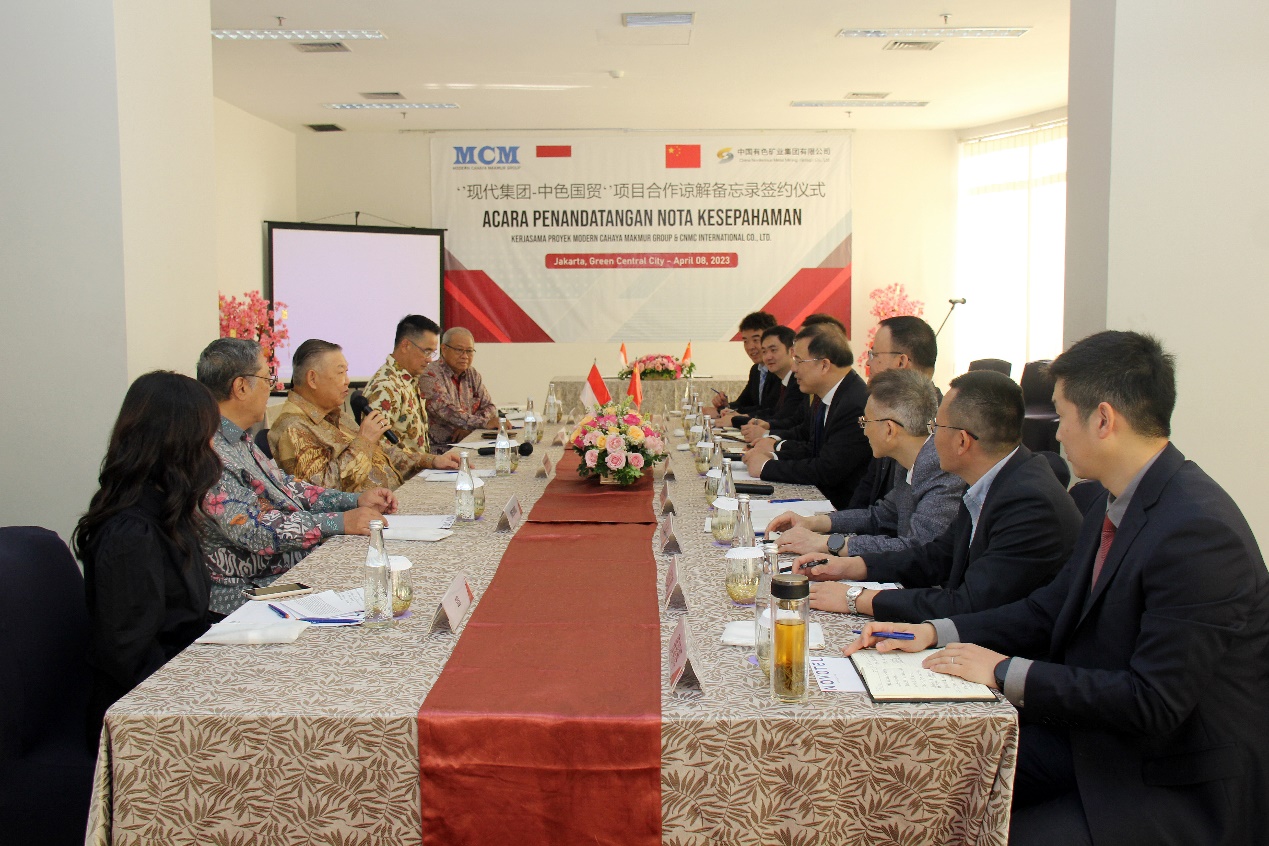 在印尼期間,奚正平董事長一行拜訪了印尼Modern集團,對Modern集團的發展及現狀、印尼礦產資源、經濟產業情況進行了深入交流,出席了“現代集團-中色國貿”項目合作諒解備忘錄簽約儀式。工作組一行對Modern雅加達Cikende工業園進行了實地考察。