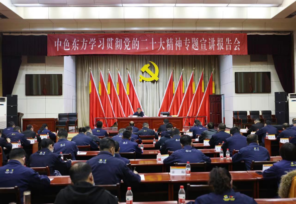為深入學(xué)習(xí)宣傳貫徹黨的二十大精神,根據(jù)寧夏自治區(qū)黨委統(tǒng)一部署,11月17日,自治區(qū)宣講團(tuán)成員、自治區(qū)政協(xié)副主席馮志強在中國有色集團(tuán)出資企業(yè)中色(寧夏)東方集團(tuán)有限公司(簡稱:中色東方)作黨的二十大精神專題宣講報告。中色東方黨委書記、董事長李春光主持,石嘴山市政協(xié)主席魏和清出席會議。
