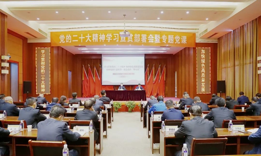 ????11月7日,在公司職教中心學術報告廳,公司召開黨的二十大精神學習宣貫部署會暨專題黨課。公司黨委書記、董事長、總經理王焱以《學習貫徹黨的二十大精神 加快綠色高質量發展 勇做集團打造世界一流企業“排頭兵”》為題講專題黨課。公司黨委副書記、工會主席王勃就公司黨的二十大精神學習宣傳貫徹工作進行了安排部署。