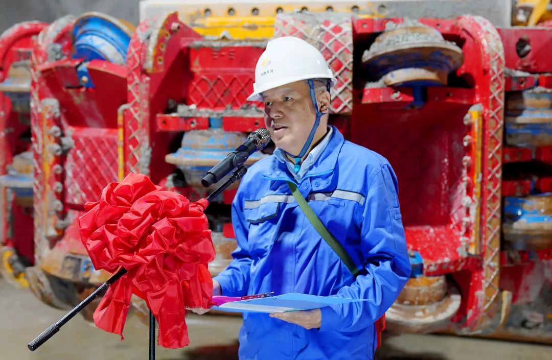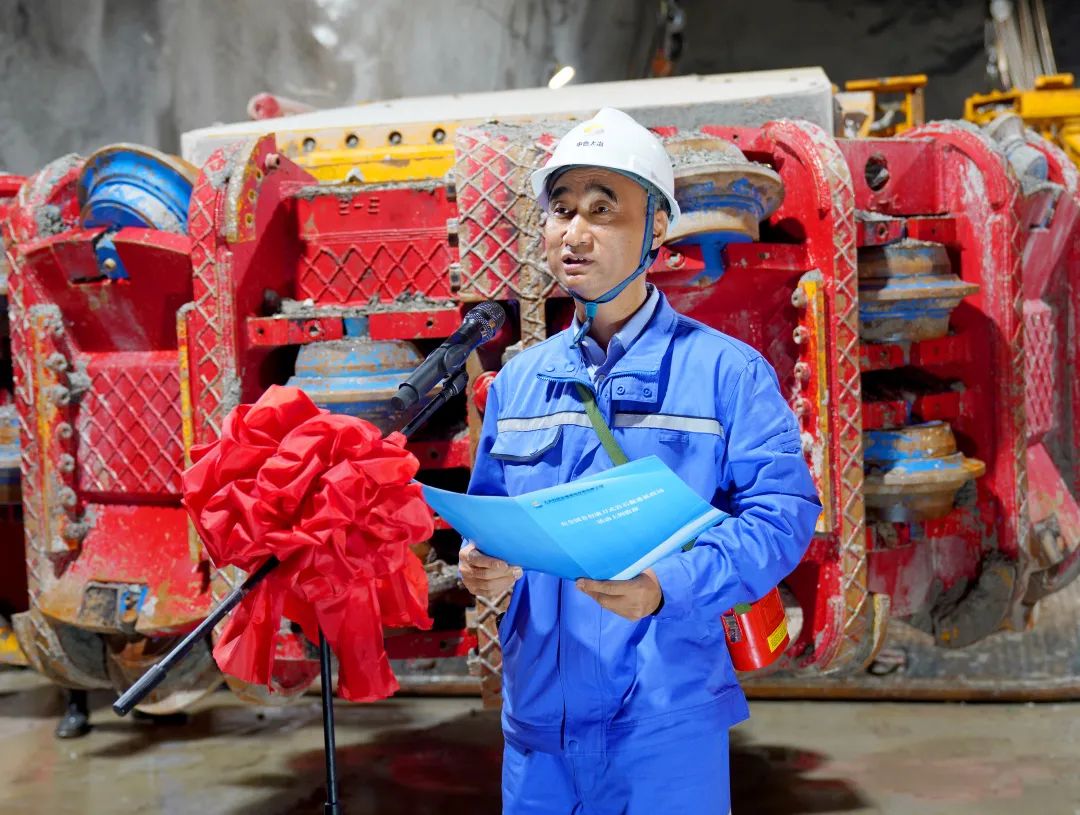 賀勇軍在致辭中向支持本項目實施的各級領(lǐng)導(dǎo)、向精誠合作的大冶有色、向蒞臨現(xiàn)場的嘉賓表示感謝。他表示,鐵建重工始終錨定差異化、定制化的高端裝備研發(fā)制造路線,矢志成為世界一流現(xiàn)代化高端裝備制造與服務(wù)整體解決方案提供商。此次投用的全國首臺滾刀式巖石掘進機,實現(xiàn)了我國礦山裝備領(lǐng)域的重大跨越,填補了非全斷面硬巖掘進裝備的國內(nèi)空白,開創(chuàng)“安全、高效、綠色、智能”全新開采模式。他表示,滾刀式巖石掘進機攻克了三大核心技術(shù)難題:一是首創(chuàng)150MPa硬巖非全斷面掘進技術(shù),使掘進效率較傳統(tǒng)爆破法提升3倍;二是構(gòu)建掘進、支護、運輸全流程智能協(xié)同體系,大幅降低勞動強度;三是突破復(fù)雜地質(zhì)適應(yīng)技術(shù),可廣泛應(yīng)用于煤礦、非煤礦山、隧道等硬巖掘進場景。這臺掘進機在銅山口礦的成功實踐將為我國深部礦產(chǎn)資源開發(fā)提供可靠的技術(shù)支撐,有力推動礦山智能化建設(shè),推動國內(nèi)礦山開采正式邁入綠色智能新時代。