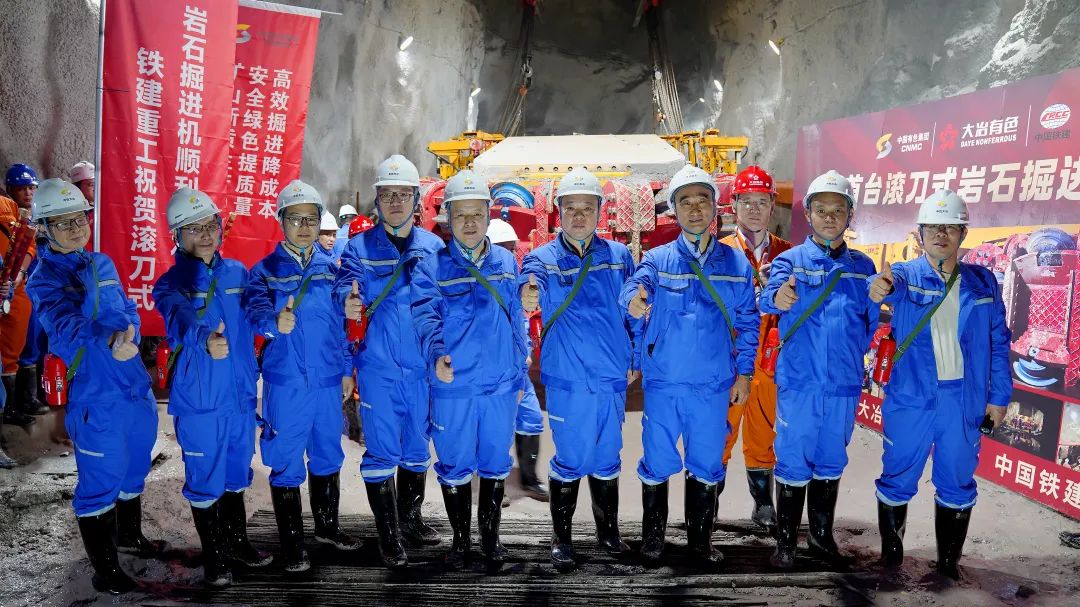 4月25日,全國首臺滾刀式巖石掘進機投運儀式在銅山口礦隆重舉行。黃石市應(yīng)急管理局書記吳大洪,大冶市應(yīng)急管理局局長黃建剛,鐵建重工黨委副書記、常務(wù)副總經(jīng)理賀勇軍,公司黨委書記、董事長胡國斌參加活動,共同見證行業(yè)的里程碑時刻。