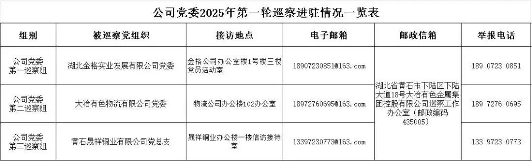 6月4日、10日,公司黨委2025年第一輪巡察第一、第二、第三巡察組分別進駐金格公司黨委、物流公司黨委、晟祥銅業黨總支開展常規巡察。公司黨委副書記、工會主席、公司巡察工作領導小組副組長王勃作進駐動員講話。